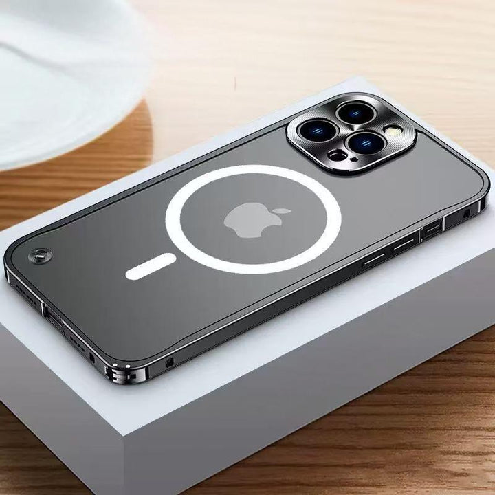 Metal Frame Transparent Frosted Acrylic Back With Lens Protective Back Phone Case for iPhone