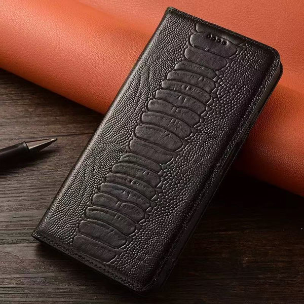 Business Luxury Genuine Leather Ostrich Foot Retro Wallet Flip Phone Case For iPhone