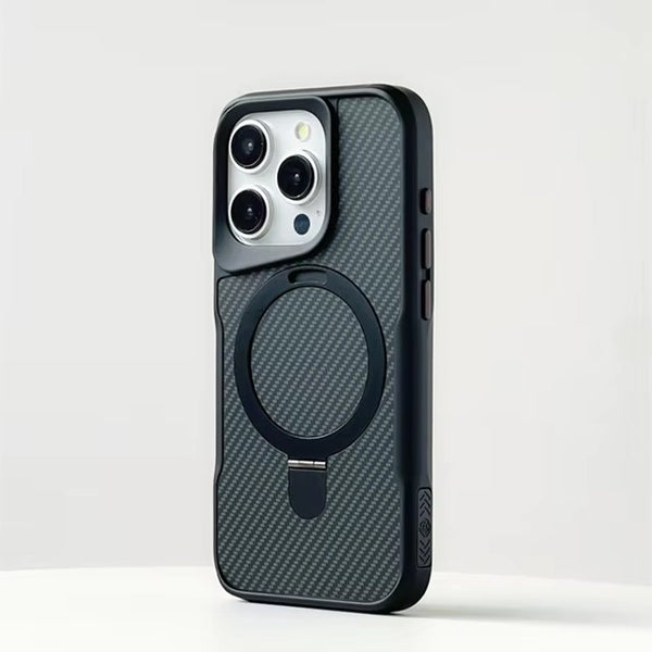 Carbon Fiber Magsafe Magnetic Soft Rubber Frame Metal Stand Phone Case For iPhone