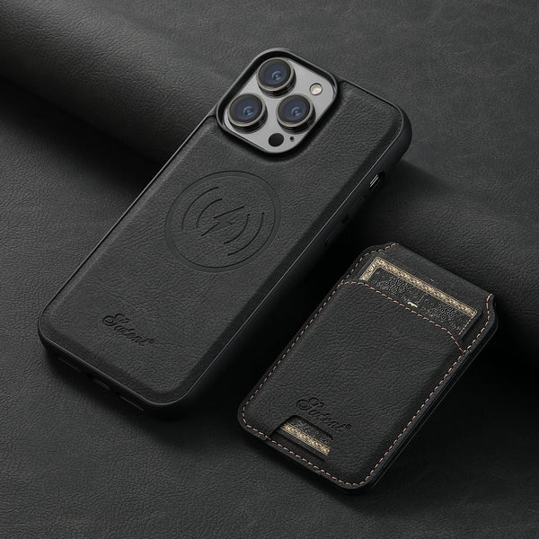 2 in 1 Magnetic Wallet Removable Carbon Fiber Card Holder Phone Case For iPhone