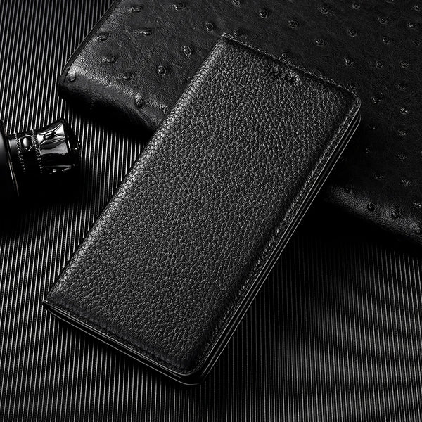 Business Luxury Magnetic Flip Full Protective Genuine Leather Wallet Phone Case For iPhone