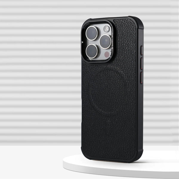 Business Leather Mountain pattern alloy lens protector Shockproof Magsafe Phone Case For iPhone