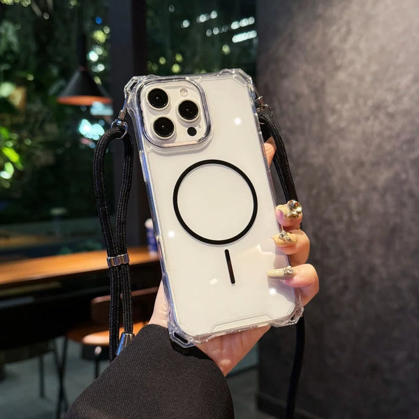 Hard Transparent Magsafe Crossbody Strap Lanyard Magnetic Phone Case For iPhone