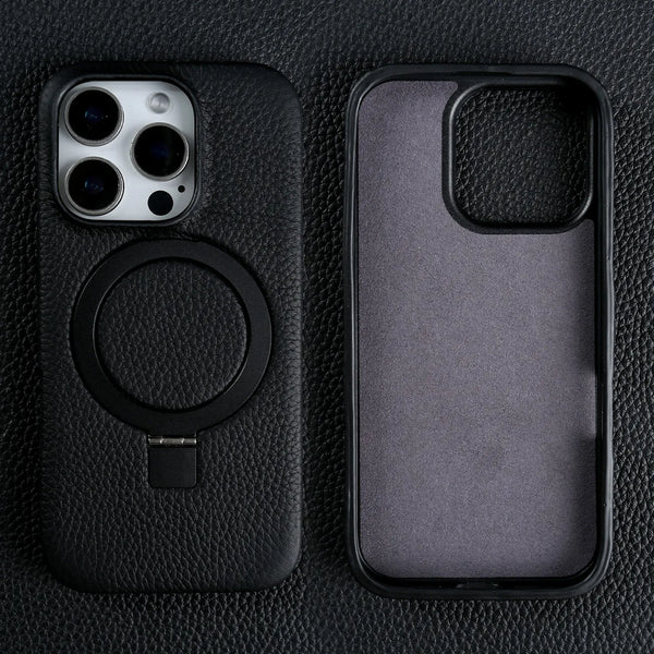Genuine Leather Magnetic Magsafe Ring Stand Phone Case For iPhone