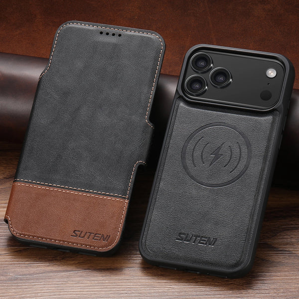 Flip Wallet Magnetic Color Matchin Leather Wireless Charging Card Holder Phone Case For iPhone