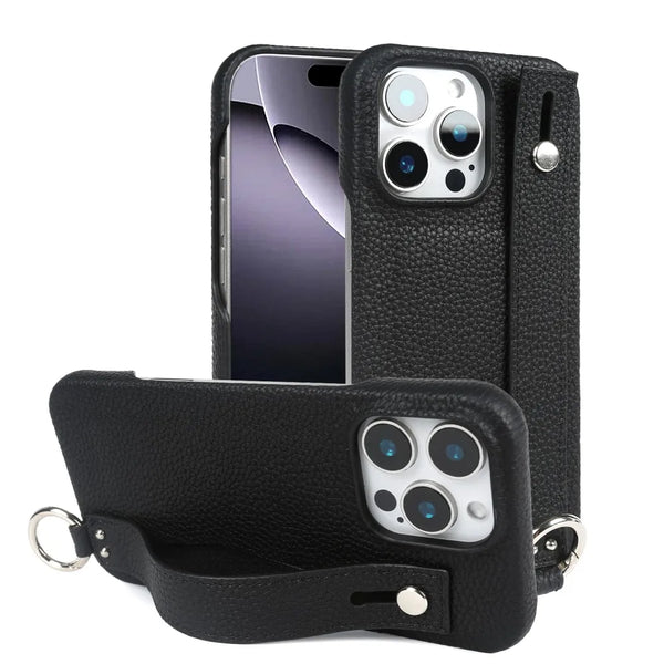 Genuine Cow Leather Wristband Strap Bracket Card Holder Phone Case For iPhone