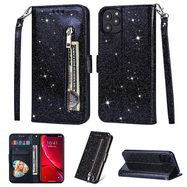 Brand Name: AF CaseType: Wallet CaseCompatible Brand: Apple iPhonesMaterial:Leather This glamorous glitter phone case features a sturdy PU leather design that offers both protection and a convenient stand for your iPhone....