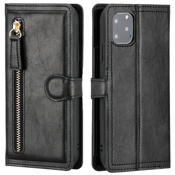 Leather Zipper Flip Wallet Phone Case For iPhone With Card Holder Stand