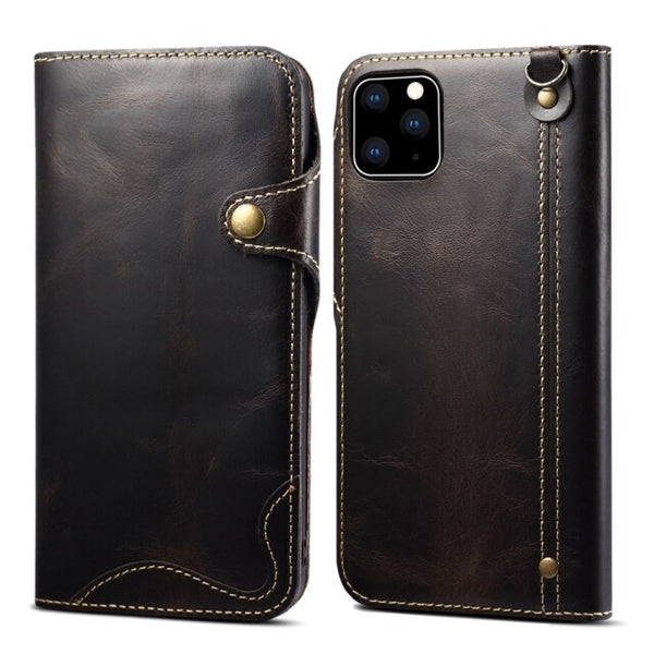Luxury High-end Real Cowhide Retro Leather Phone Case For iPhone