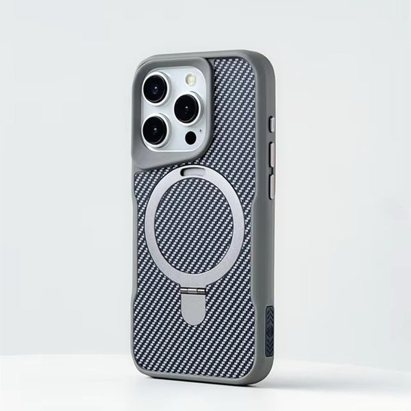 Carbon Fiber Magsafe Magnetic Soft Rubber Frame Metal Stand Phone Case For iPhone