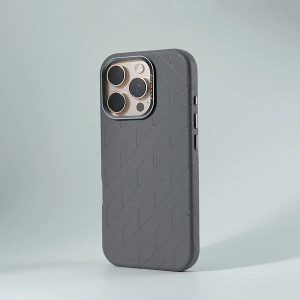 Geometric Lattices Relief Leather MagSafe Alloy Lens Phone Case For iPhone