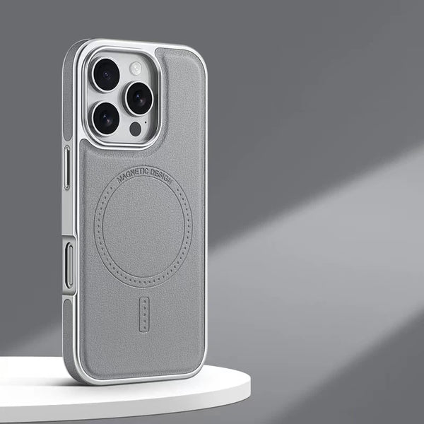 Luxury Business Ultra Thin Plain Leather MagSafe Phone Case For iPhone
