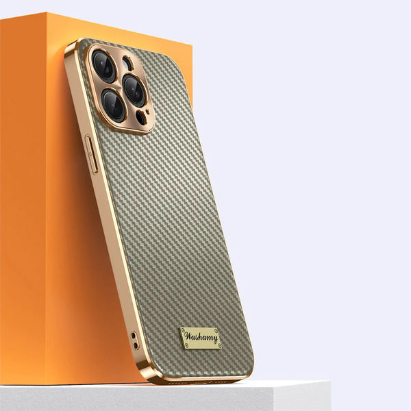Carbon Fiber Texture Leather Electroplating lens protection Phone Case For iPhone