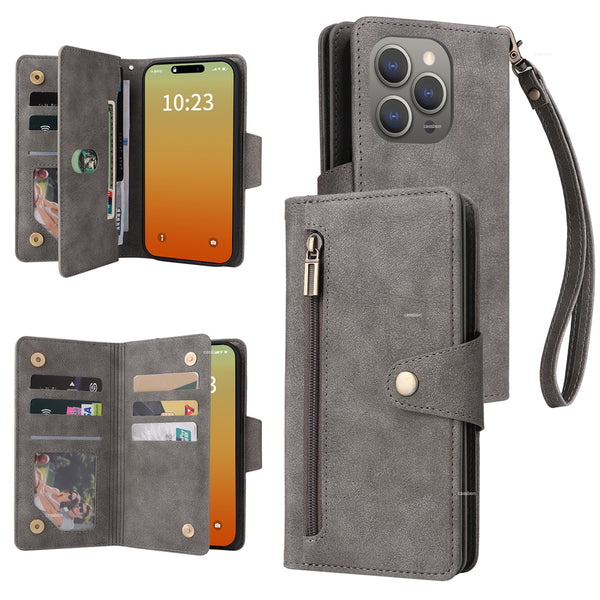 Leather Zipper Wallet Flip Phone Case For iPhone