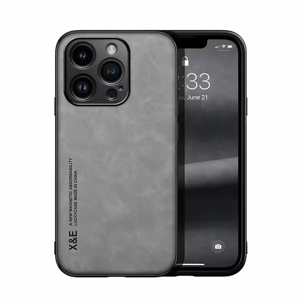 Luxury Leather Shockproof With car magnetic Suction Phone Case For iPhone
