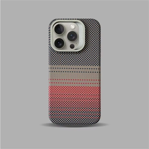 Luxury Matte Carbon Mganetic Slim Knitted Embossed Alloy Lens Phone Case For iPhone