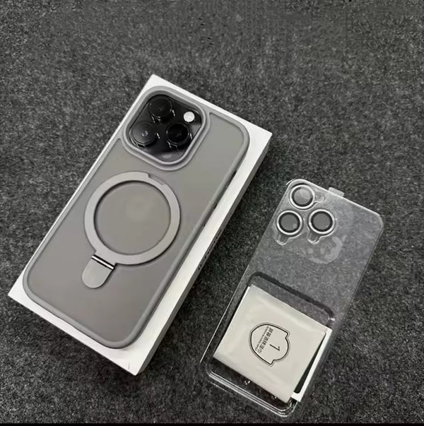 Magnetic 360°Rotation With Ring Holder Frosted Transparent Phone Case For iphone