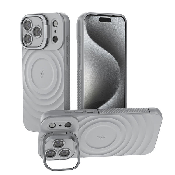 Luxury Magsafe Wireless Charging Fold Lens Stand Water Wave Magnetic Phone Case For iPhone