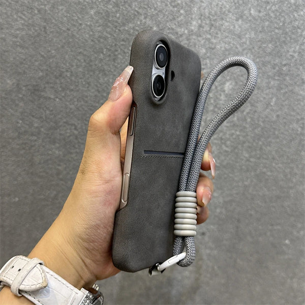 Luxury Skin Feel Sheepskin insert Card Soft Leather Lanyard Phone Case For iPhone