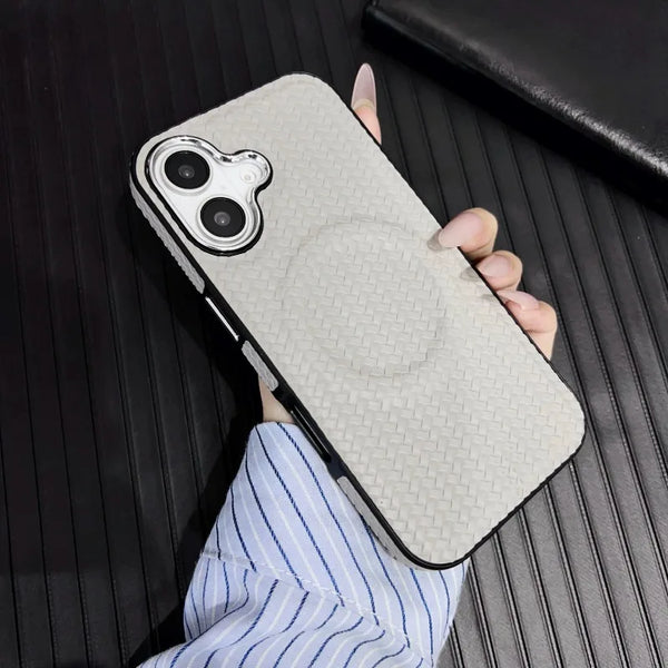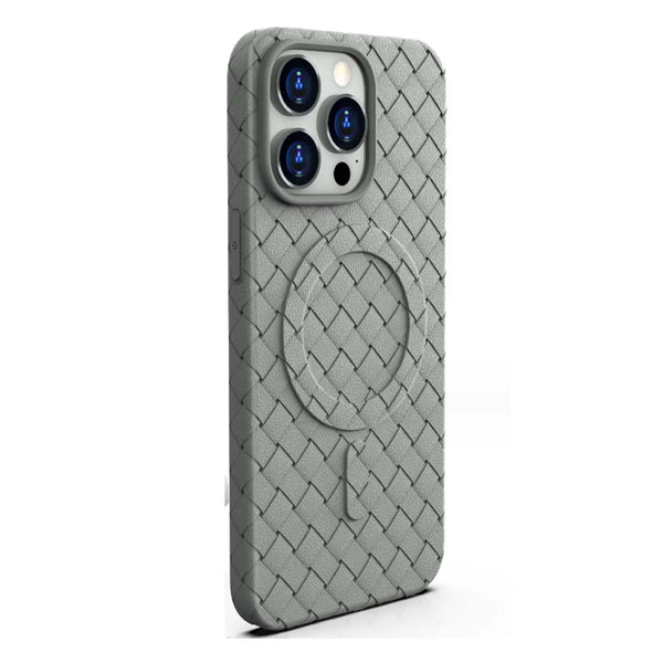 Weave Pattern PU Leather Magnetic MagSafe Phone Case For iPhone