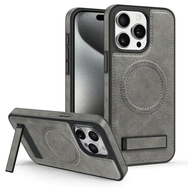 Shockproof Kickstand PU Leather Magsafe Phone Case For iPhone