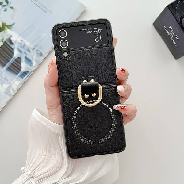 Magnetic Magsafe PU Leather With Ring Holder Phone Case For Samsung Galaxy Z Flip