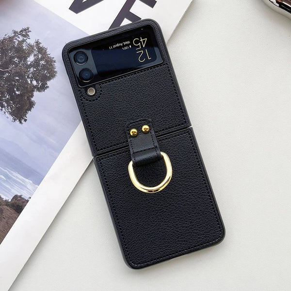 Retro PU Leather Hard PC With Ring Holder Shockproof Phone Case For Samsung Galaxy Z Flip