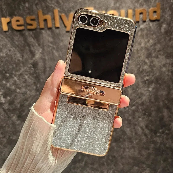 Glitter Diamond Gradient Hard Plating Ring Holder Stand Phone Case For Samsung Galaxy Z Flip