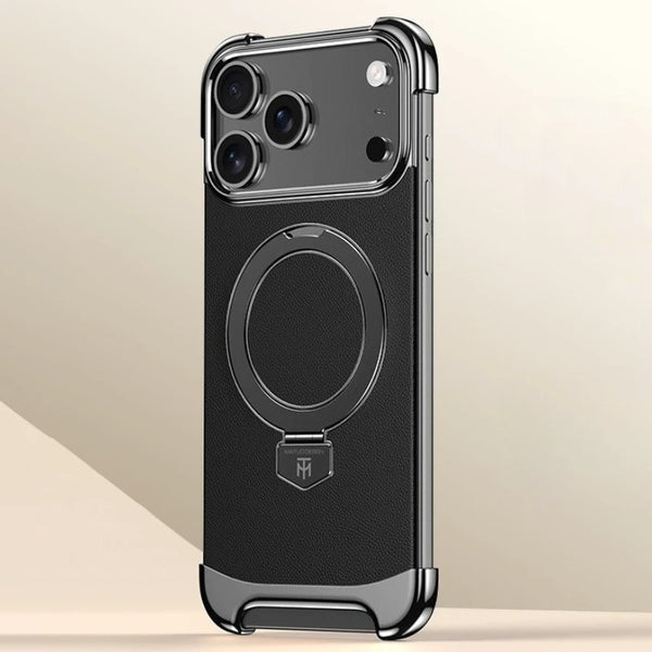 Ultra-thin Frameless Leather Plating Bracket Magsafe Phone Case For iPhone