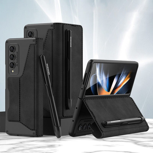 Flip Stand Leather Wallet With Holder Phone Case For Galaxy Z Fold