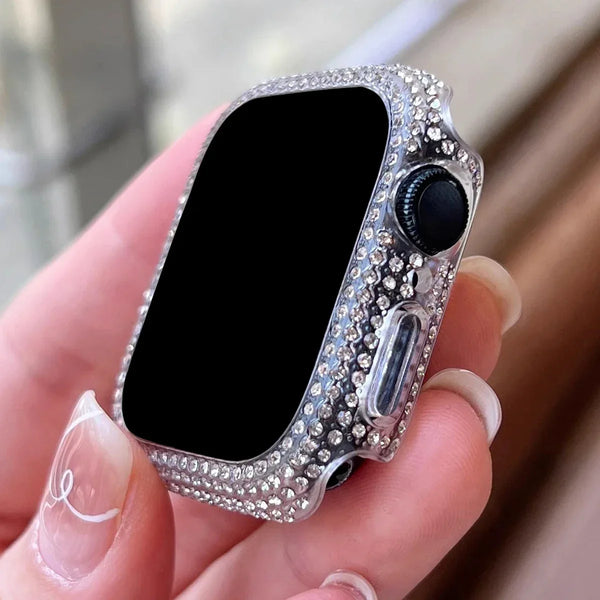 Rhinestone Decor Tempered Glass Screen Protector Watch Case For Apple Watch