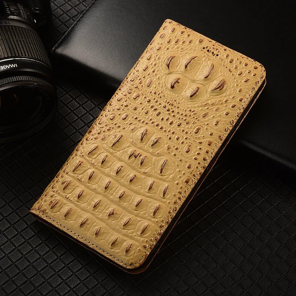 Business Crocodile Back Genuine Leather Wallet Flip Phone Case For iPhone