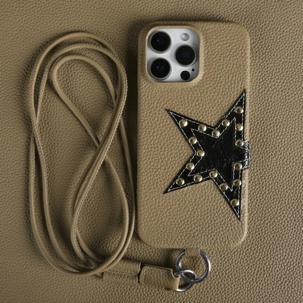 Luxury Star Genuine Cow Leather With Strap Crossbody Lanyard Phone Case For iPhone