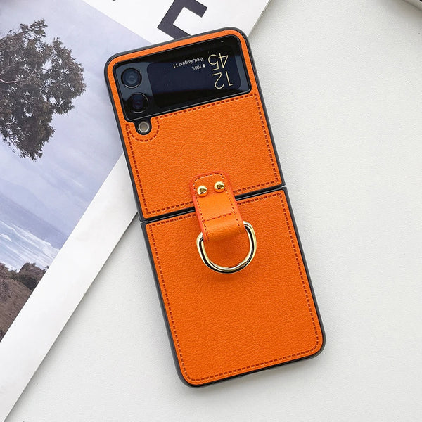 Retro PU Leather Hard PC With Ring Holder Shockproof Phone Case For Samsung Galaxy Z Flip