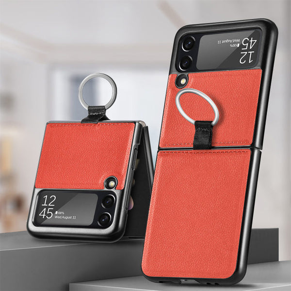 Anti-knock luxury leather Ring Phone Case For Samsung Galaxy Z Flip