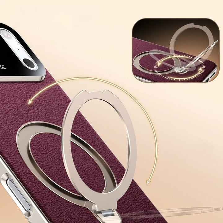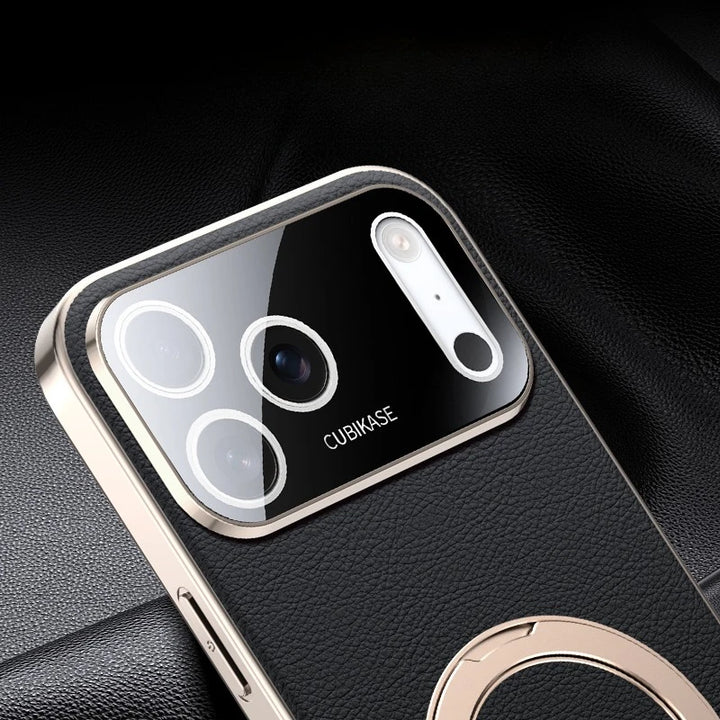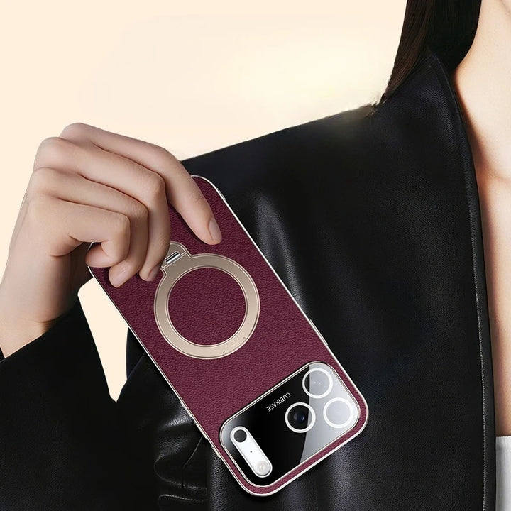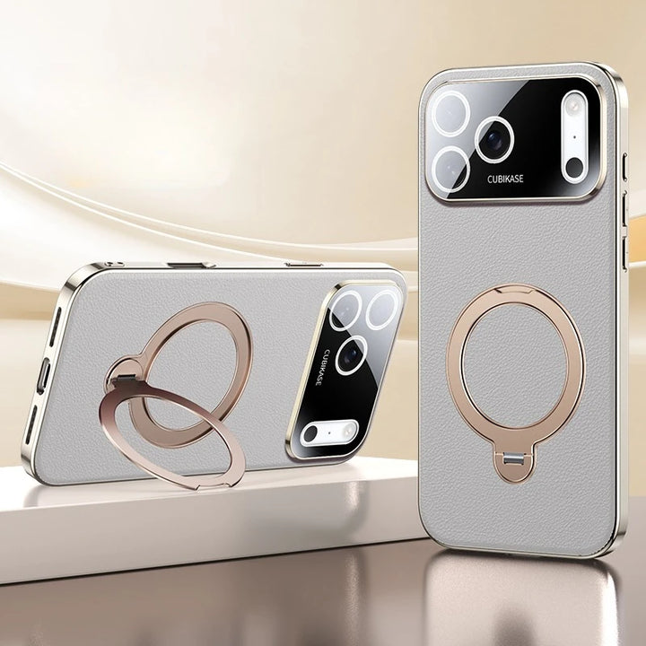 Electroplated Leather Magnetic Holder Lens Protection Phone Case for iPhone
