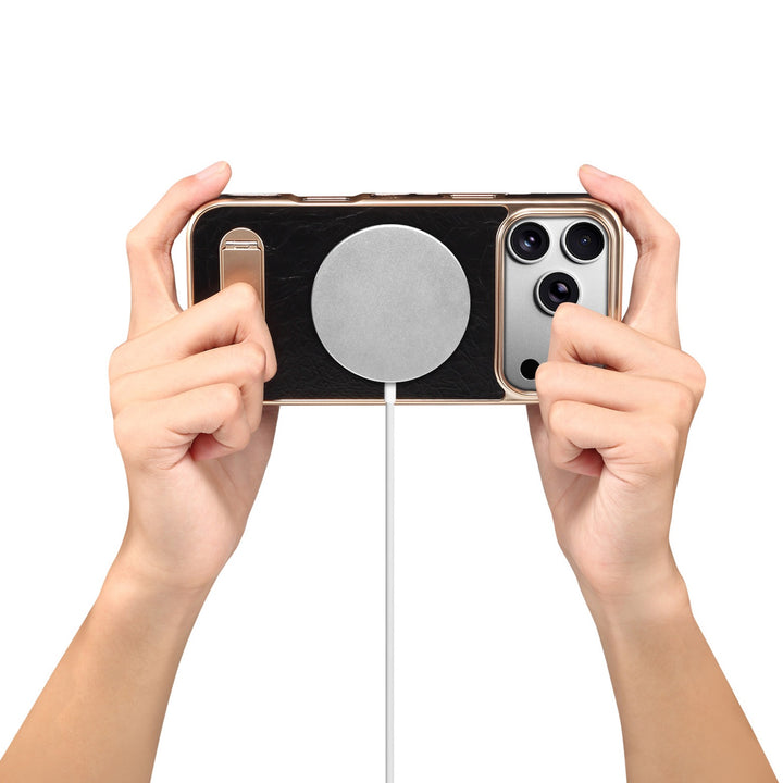 Genuine Cowhide Leather Metal Stand MagneticMagsafe Phone Case For iPhone