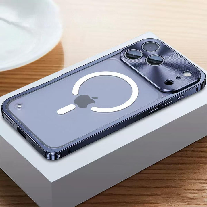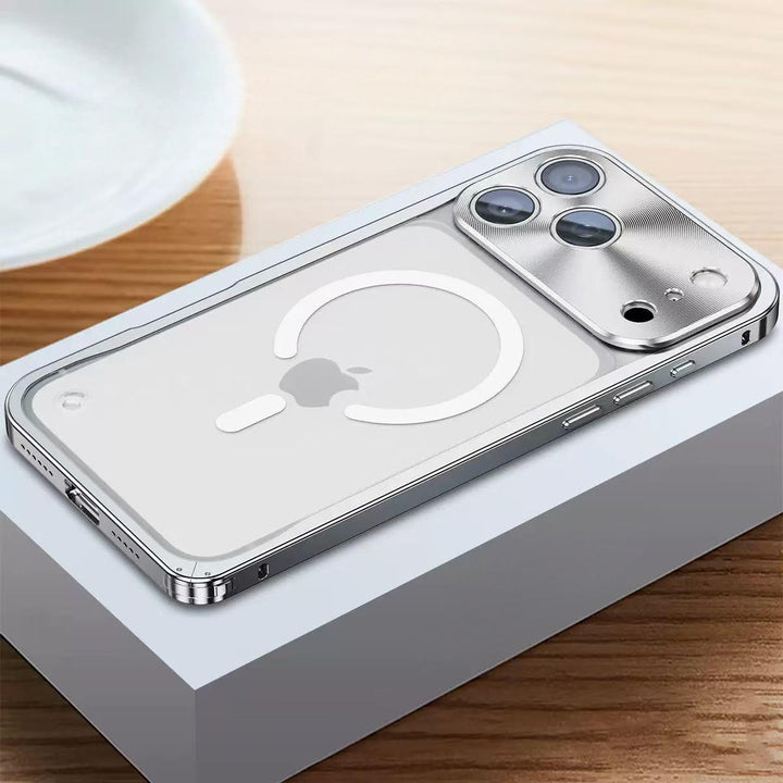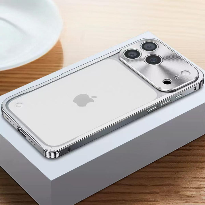 Metal Frame Transparent Frosted Acrylic Back With Lens Protective Back Phone Case for iPhone